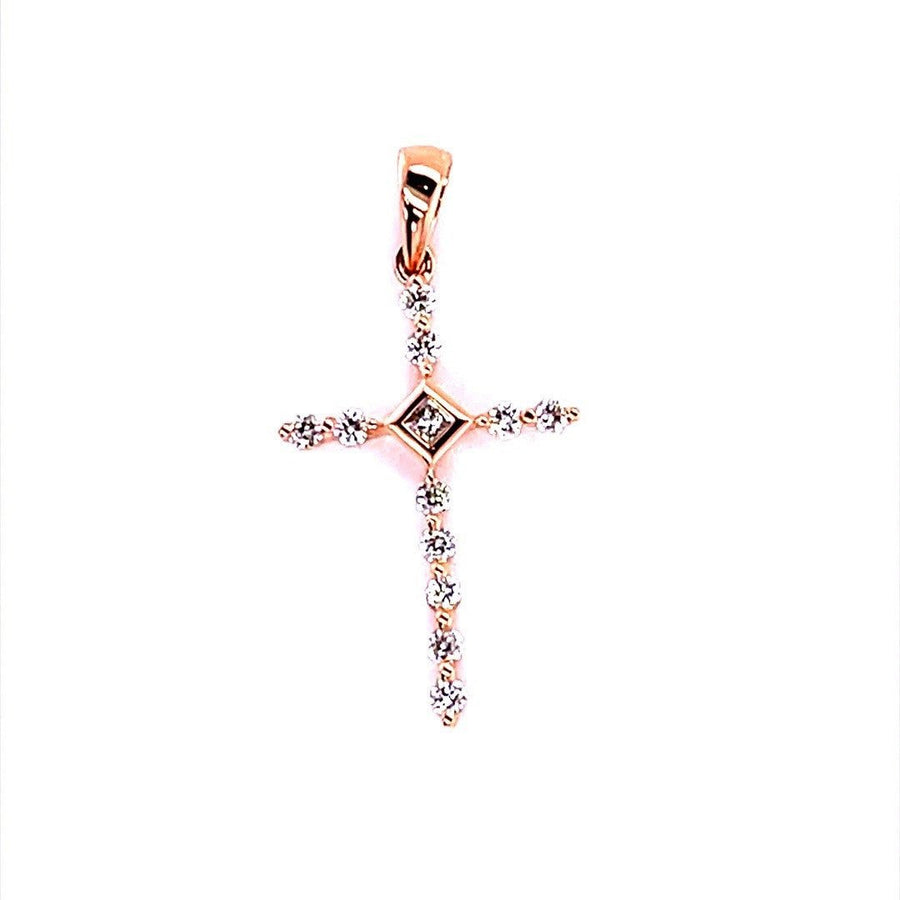 18k Rose Gold Diamond Cross Pendant