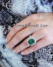 9.63 ct Green Emerald and Double Diamond Halo Ring