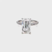 Elevate your love story with our Bella Engagement Ring. This exquisite piece features a certified 6.03ct lab-created emerald cut diamond, surrounded by natural round brilliant pave diamonds on the shank and underneath the center stone. Crafted in luxurious 18k white gold, it exudes elegance and sophistication. Make a statement of eternal love today