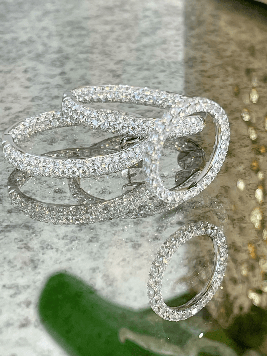 This superb pair of Diamond pave Hoop Earrings are crafted in 18ct white gold and they’ll make an incredible statement addition to your jewellery collection