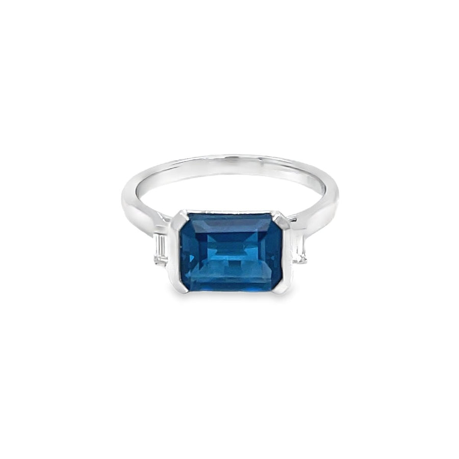 The 9k white gold Trilogy Ring features exquisite Baguette Diamonds and a stunning London Blue Topaz, making it a must-have for any jewelry enthusiast. Crafted with superior craftsmanship and attention to detail, this ring exudes elegance and sophistication.