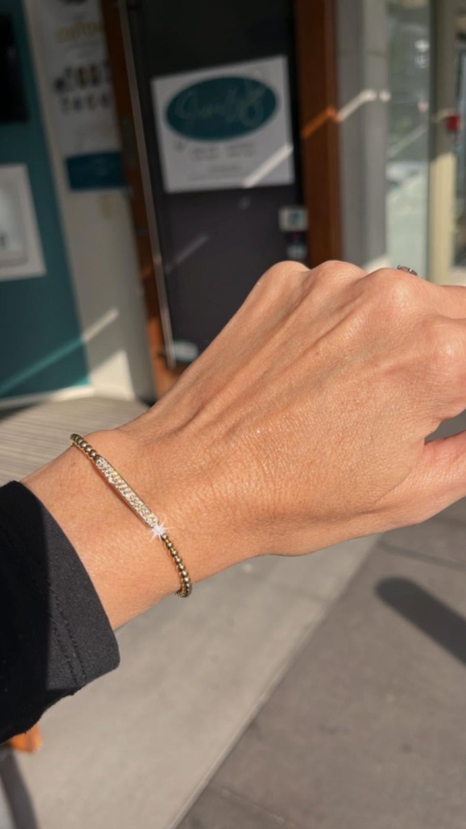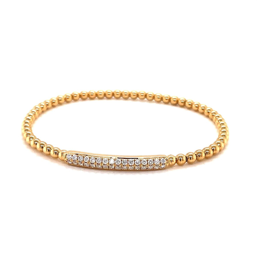 This intricate stretch beaded 18k Yellow Gold bracelet adds elegance to any wrist and is the perfect, classic piece, to accompany any outfit. Most importantly, our bracelets will give you a great excuse to wear diamonds any day of the week .