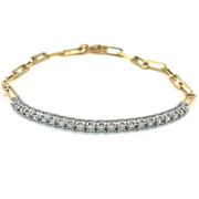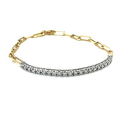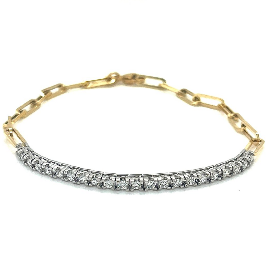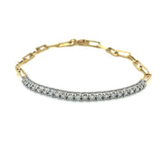 Crafted with a combination of 18 karat white and yellow gold, this Tennis and Paperclip Lab Diamond bracelet exudes elegance and sophistication. A truly stunning piece, this bracelet is perfect for any occasion.