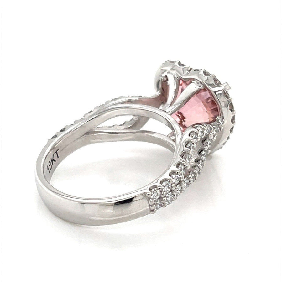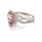 Heart Shaped Pink Tourmaline and Diamond Halo Ring