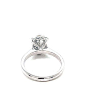 Adorned with a dazzling 3.16 carat diamond and set in luxurious 18k white gold, this ring exudes sophistication and grace. You'll feel like royalty wearing this stunning piece of jewelry, and you'll turn heads wherever you go. Don't settle for ordinary when you can have extraordinary with our Solitaire Oval Diamond Ring. It's a true statement of beauty and elegance.