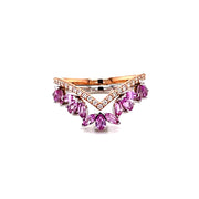 Experience pure opulence with our Tiara Pink Sapphires and Diamond Ring. Made from 18 carat white and rose gold, this double ring boasts a regal tiara design embellished with dazzling round brilliant Diamonds and eye-catching marquise and pear shaped pink Sapphires. Elevate your fashion game with this exceptional piece fit for royalty.