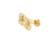 Crafted with 18k yellow gold, these delicate studs are adorned with dazzling round brilliant natural diamonds and secured with golden butterflies.